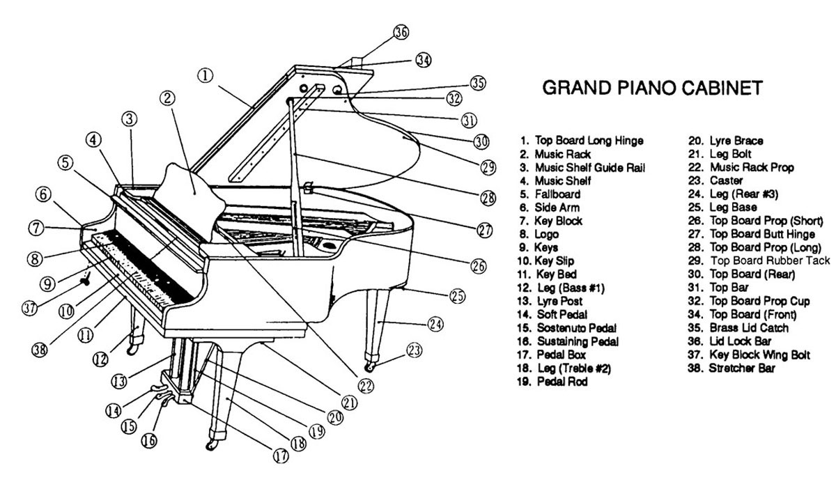 Here are some diagrams of external piano case parts so
