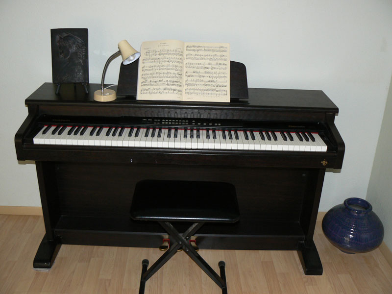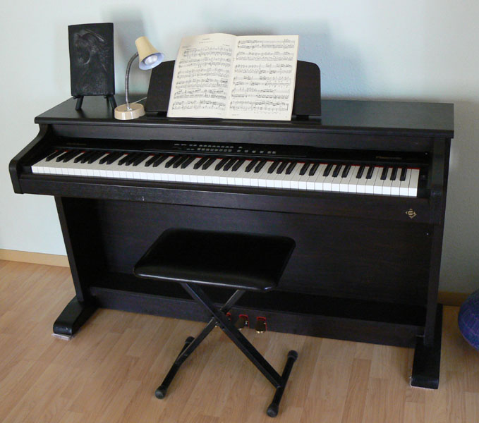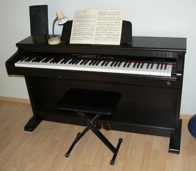 - Comments: This little electronic piano has a nice feel and a variety of sounds with effects. It is claimed to be a "weighted key" instrument. The keys are weighted but feels more in between that of a springy synthesizer and a true piano action response.
