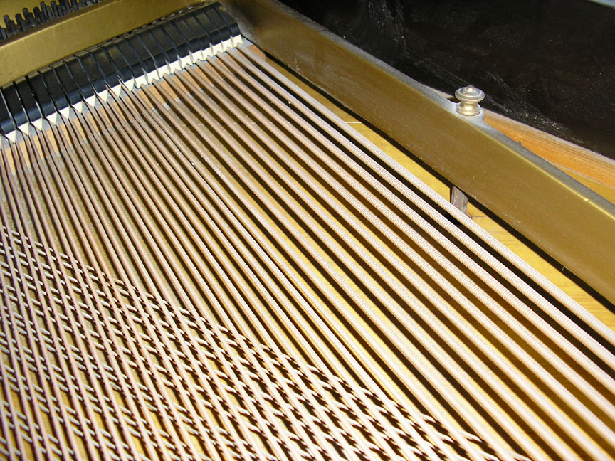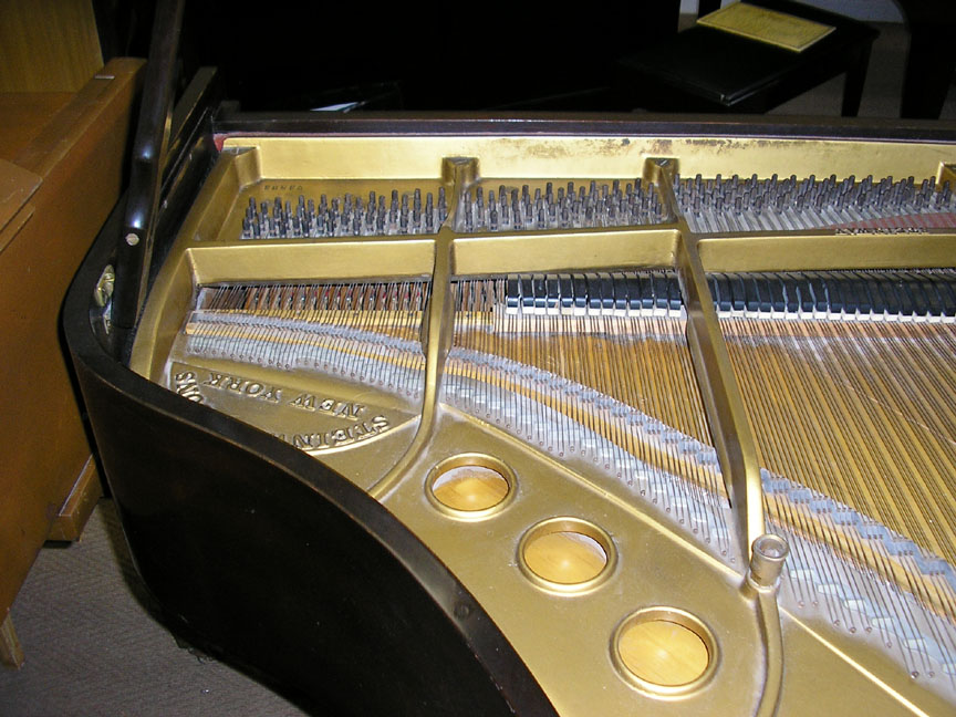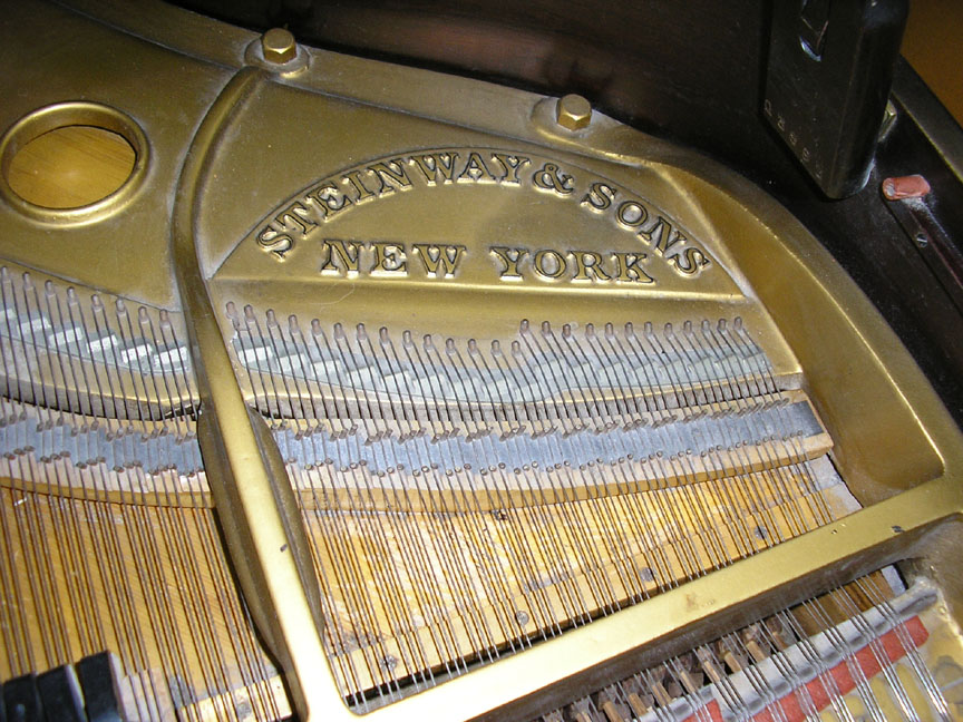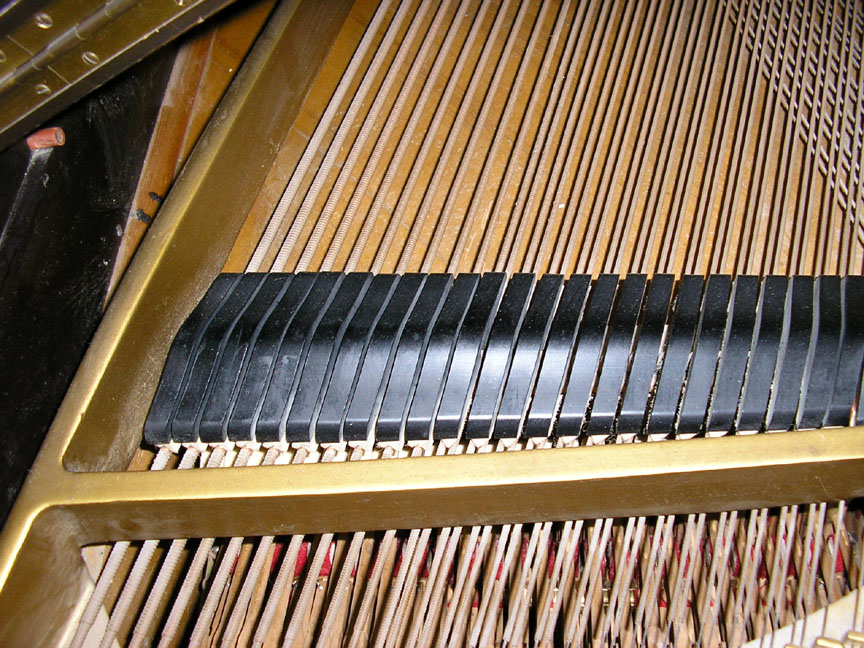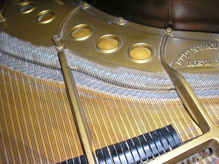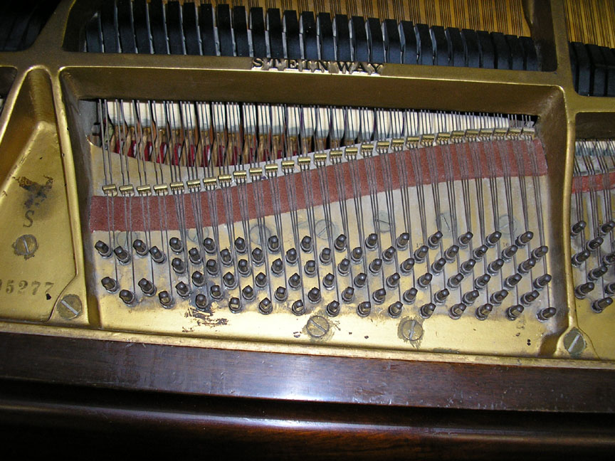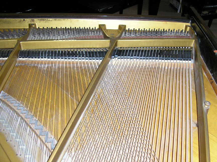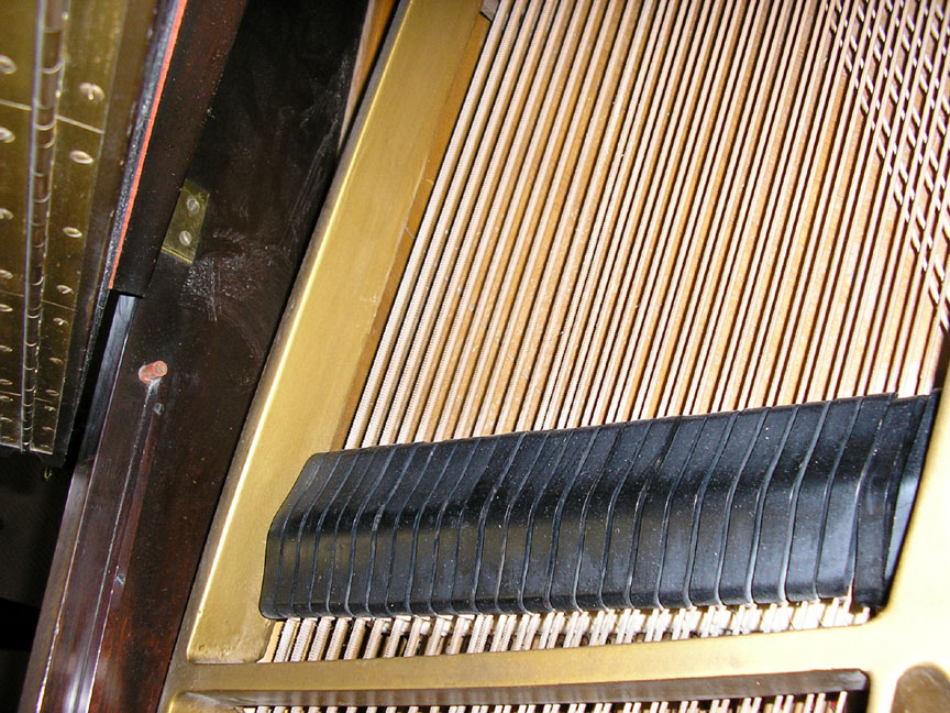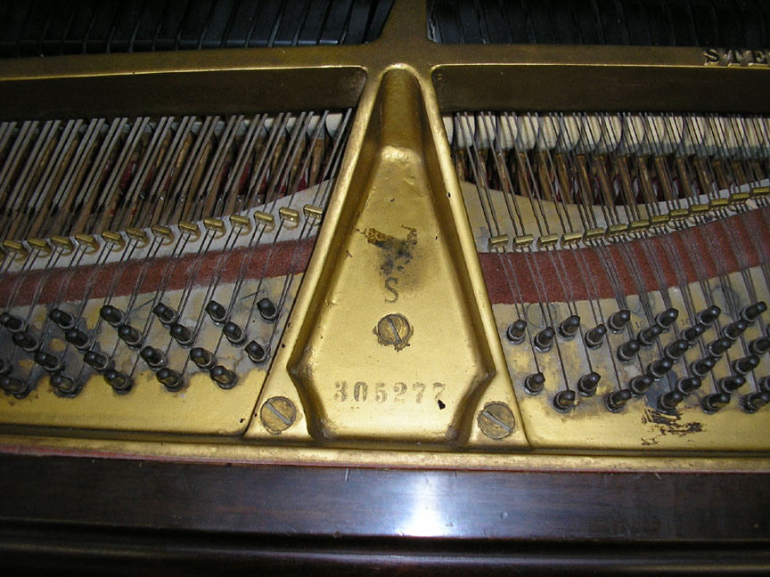 Note: Filed hammers, chip on rear of Lyre, soundboard cracks. Exterior of case could use some furniture polish but since it is thought that the next owner would like to have it refinished, this is not a good thing to do in our opinion, impeding a good refinish.